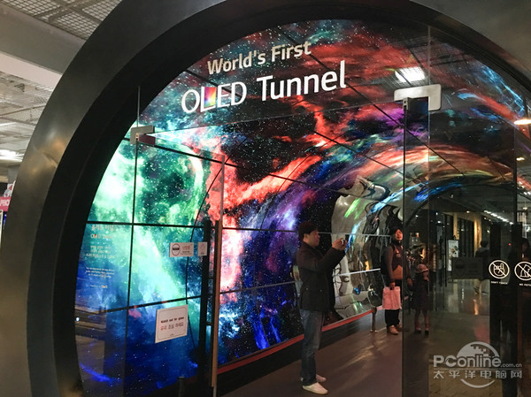 在首爾南山塔上,LGD部署了非常多的OLED曲面顯示屏幕,包括各種不同曲率、不同形態(tài)的OLED墻,OLED屏幕隧道、3D OLED屏幕,甚至波浪形的OLED屏幕,這也是首個如此大面積使用OLED顯示屏的商業(yè)場所。